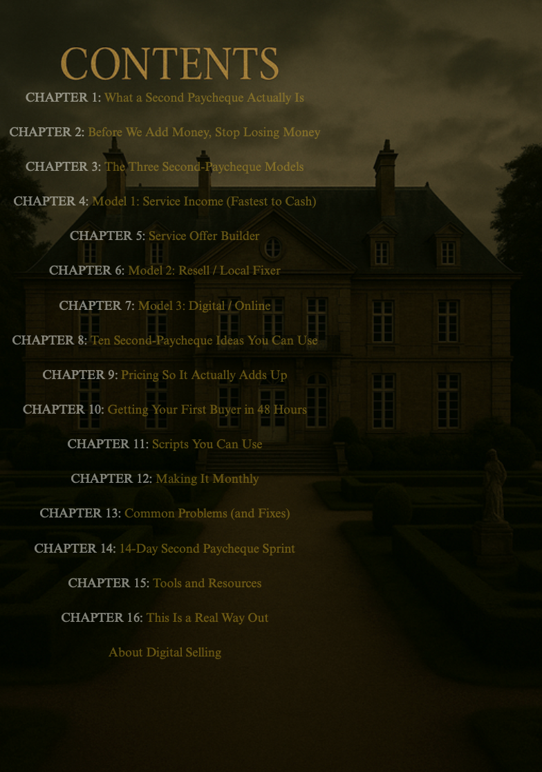 No hype, no gimmicks. This e-book shows normal working people how to add a steady second stream of money each month without quitting their job or “going viral.” It’s clear, step-by-step, and focused on actions you’ll actually take.